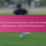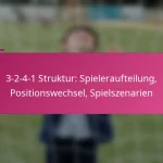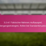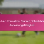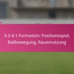 Die 3-2-4-1 Fußballformation ist ein taktisches Setup, das starke offensive Fähigkeiten mit einer soliden defensiven Struktur in Einklang bringt und drei Verteidiger, zwei zentrale Mittelfeldspieler, vier offensive Mittelfeldspieler und einen Stürmer umfasst. Diese Formation betont Ballkontrolle und offensives Spiel, wodurch die Mannschaften den Ballbesitz aufrechterhalten können, während sie sich an verschiedene Spielsituationen anpassen. Allerdings bringt sie auch Herausforderungen mit sich, wie die Anfälligkeit für Konterangriffe und die Abhängigkeit von der Fitness der Spieler.